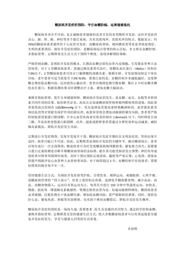 糖尿病并发症的预防:守住血糖防线,远离健康危机