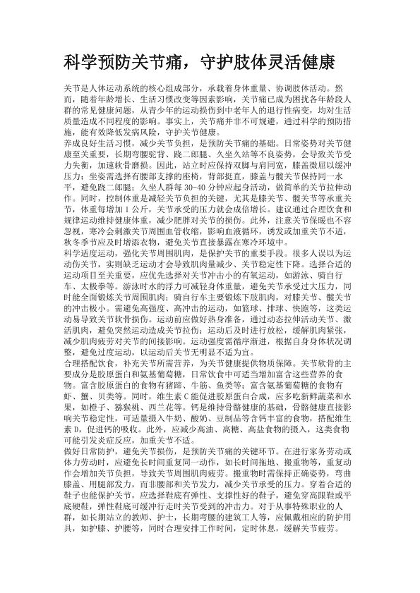 科学预防关节痛,守护肢体,灵活健康