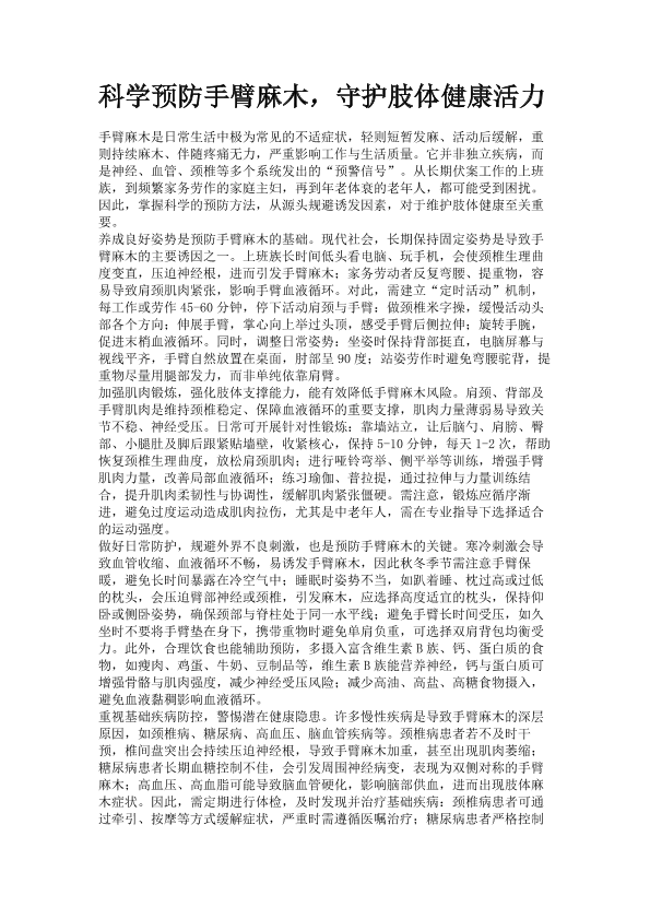 科学预防手臂麻木,守护肢体健康