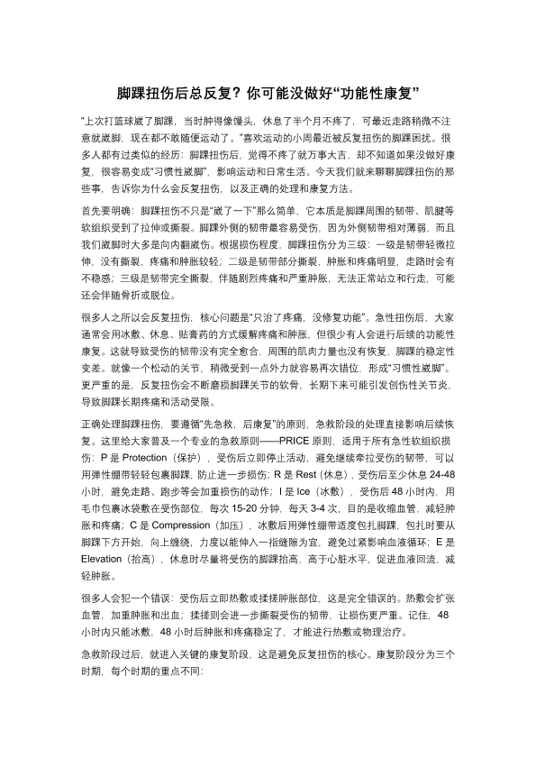脚踝扭伤后总反复?你可能没做好“功能性康复”