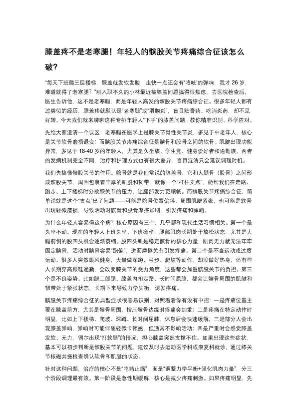 膝盖疼不是老寒腿!年轻人的髌股关节疼痛综合征该怎么破?