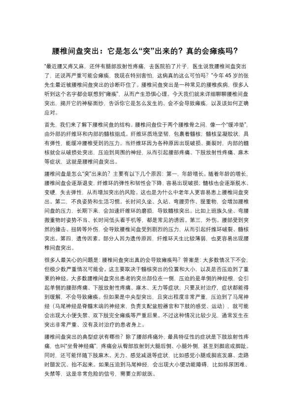 腰椎间盘突出:它是怎么“突”出来的?真的会瘫痪吗?