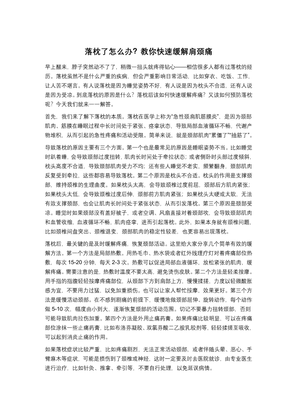 落枕了怎么办?教你快速缓解肩颈痛
