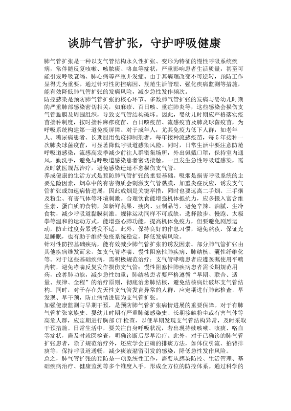 谈肺气管扩张,守护呼吸健康