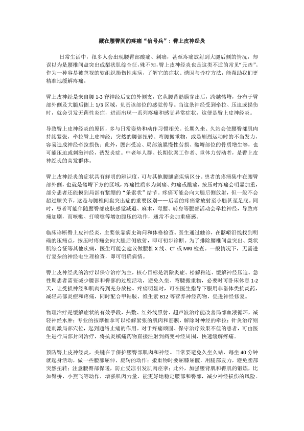 藏在腰臀间的疼痛“信号兵”: 臀上皮神经炎