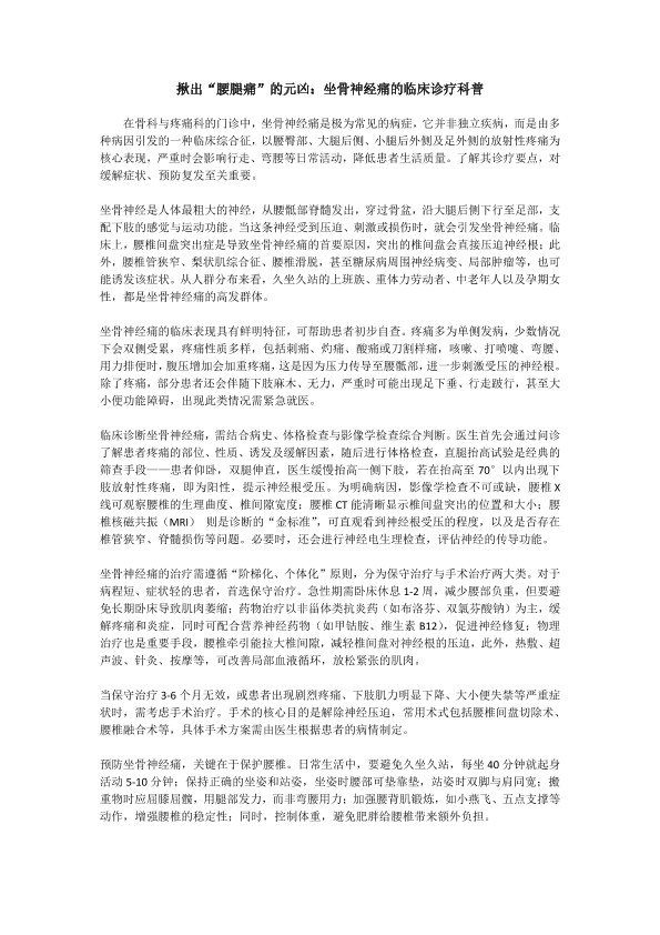 揪出“腰腿痛”的元凶:坐骨神经痛的临床诊疗科普