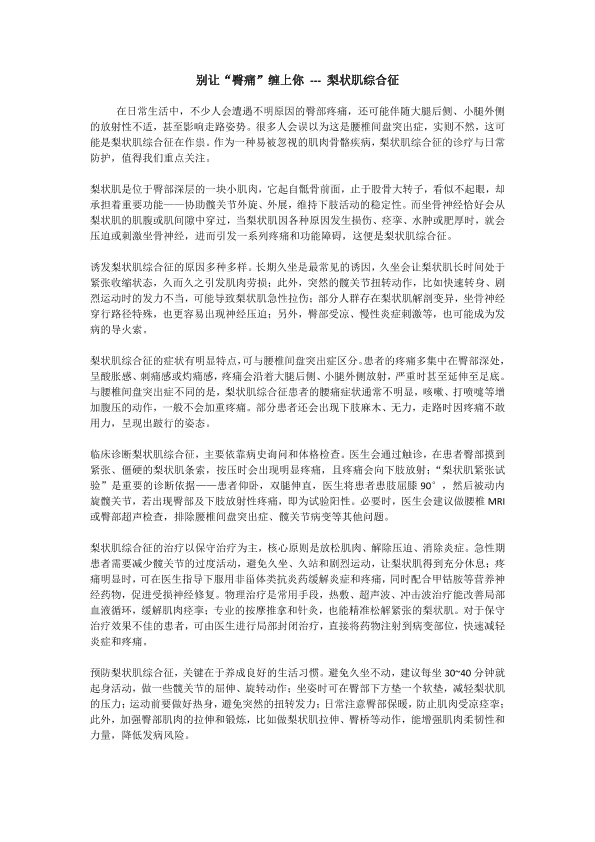 别让“臀痛”缠上你 --- 梨状肌综合征
