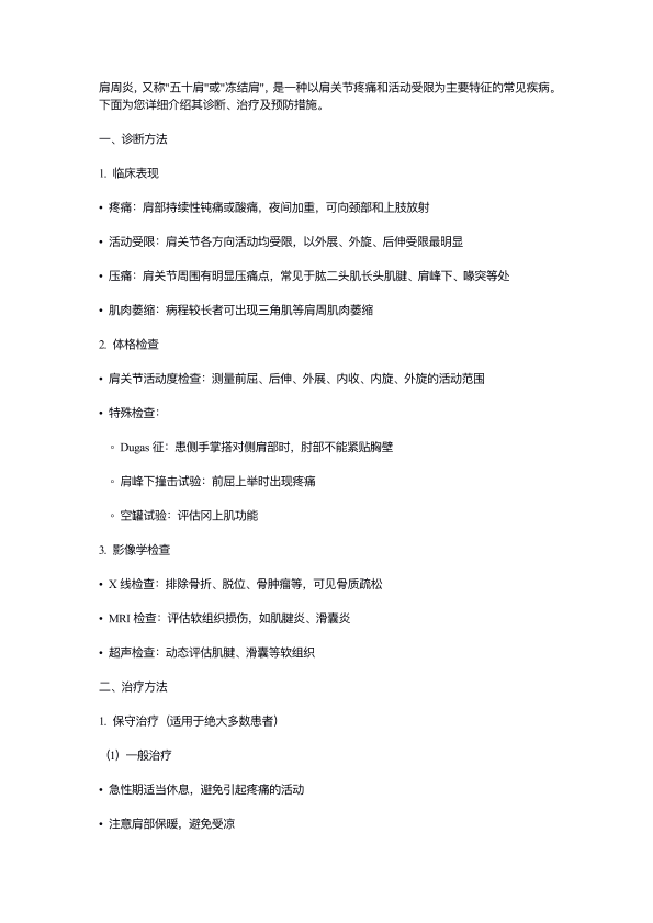 肩周炎的诊断和治疗及预防