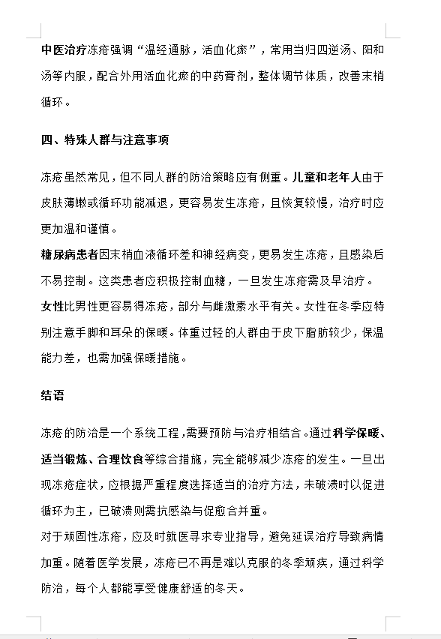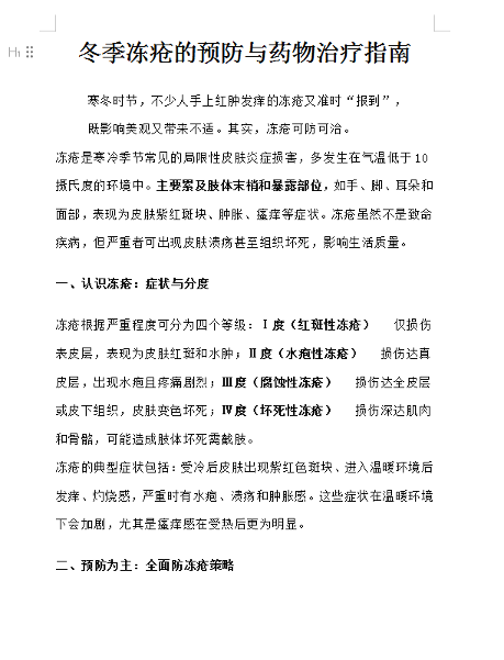冬季冻疮的预防与药物治疗指南