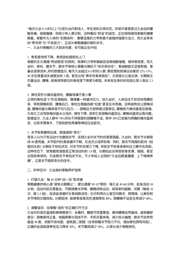 久坐族警惕!你的骨骼正在悄悄流逝健康