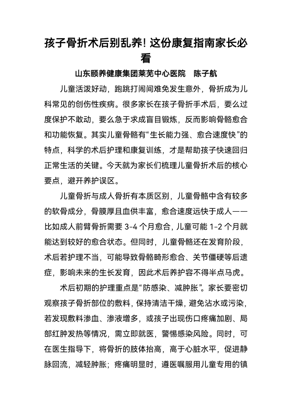 孩子骨折术后别乱养!这份康复指南家长必看