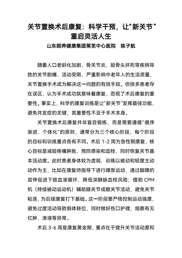 关节置换术后康复:科学干预,让“新关节”重启灵活人生