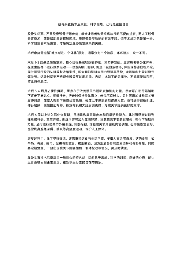 股骨头置换术后康复:科学锻炼,让行走重拾自由