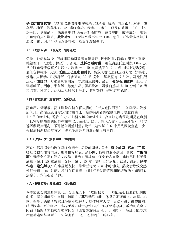冬季心脑血管疾病预防科普