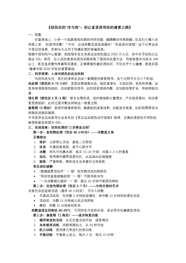 《扭伤后的“冷与热”:别让直觉误导你的康复之路》