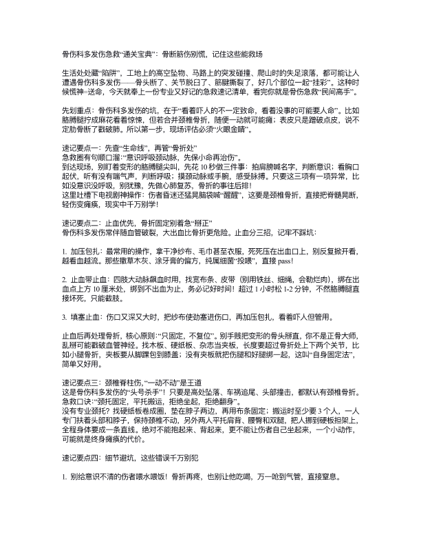 骨伤科多发伤急救“通关宝典”:骨断筋伤别慌,记住这些能救场