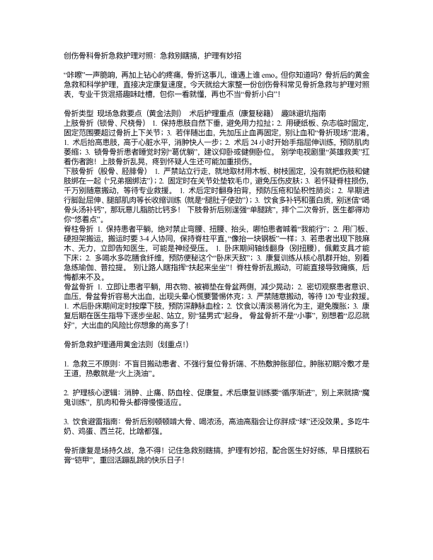 创伤骨科骨折急救护理对照:急救别瞎搞,护理有妙招