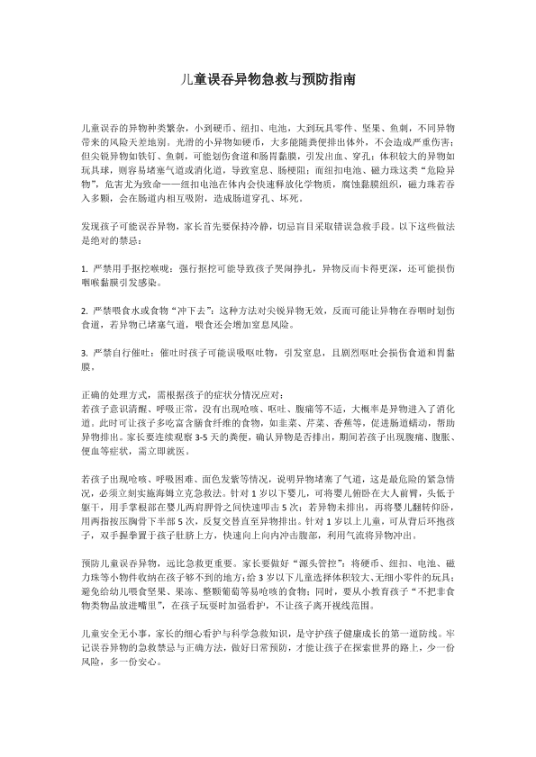 儿童误吞异物急救与预防指
