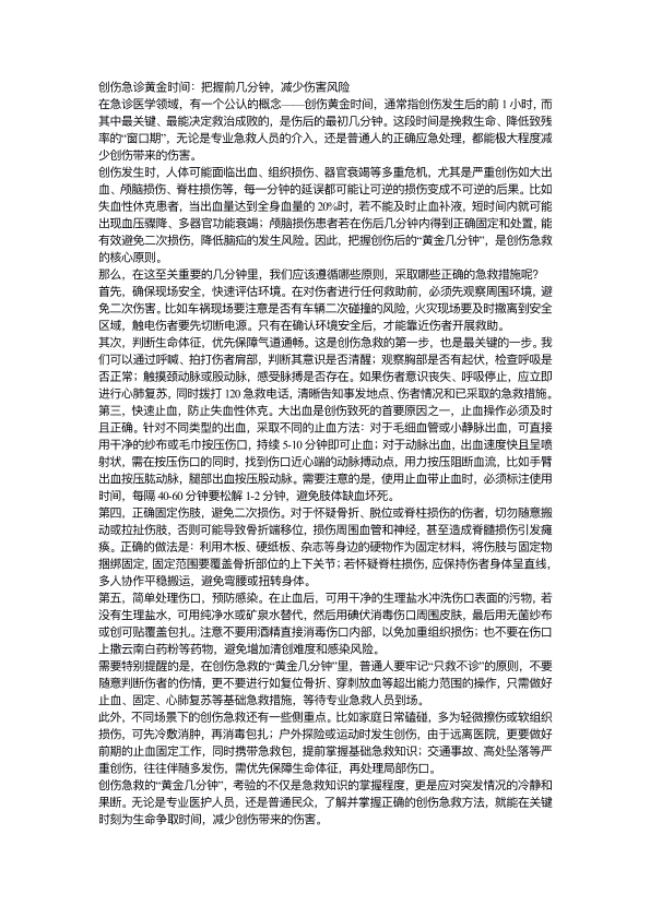 创伤急诊黄金时间:把握前几分钟,减少伤害风险