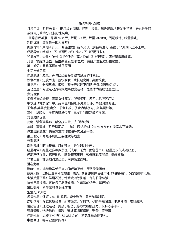 月经不调小知识