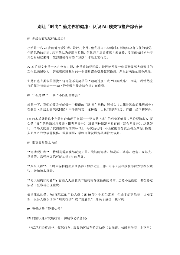 别让“时尚”偷走你的健康:认识FAI髋关节撞击综合征