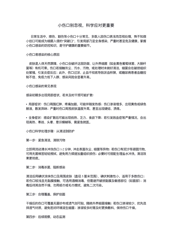 小伤口别忽视,科学应对更重要