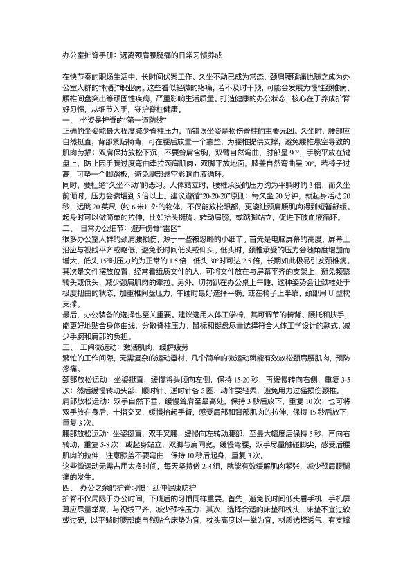 办公室护脊手册:远离颈肩腰腿痛的日常习惯养成