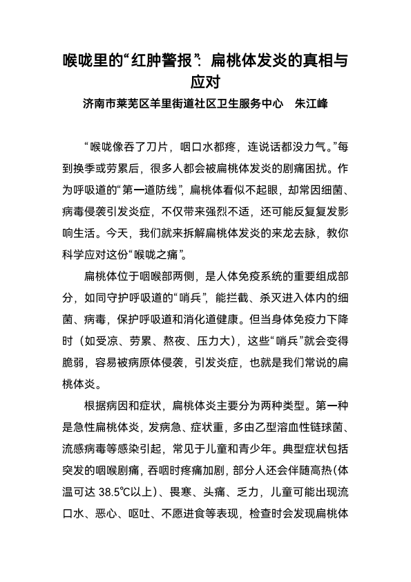 喉咙里的“红肿警报”:扁桃体发炎的真相与应对