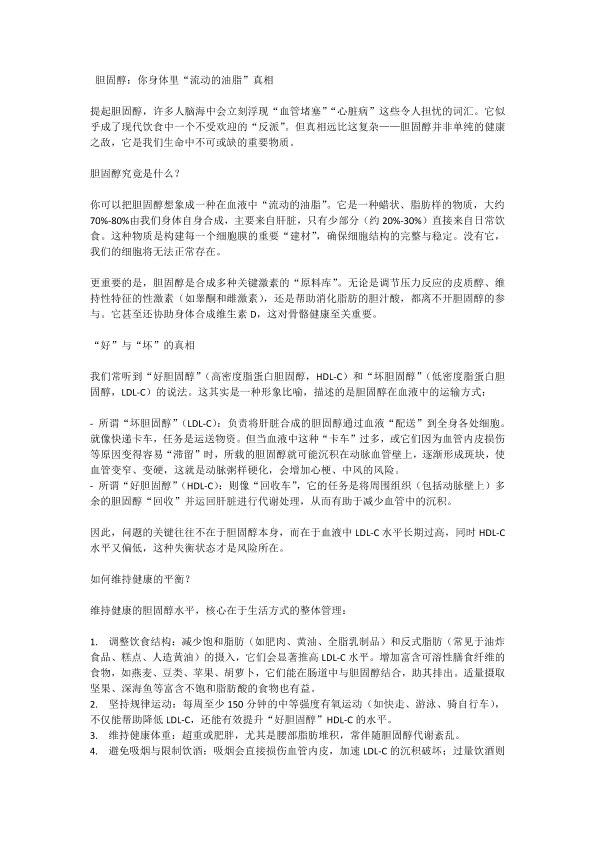 胆固醇血液流动的油