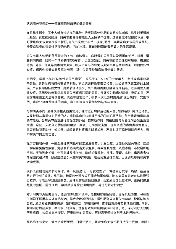 关节炎症的危害与治疗