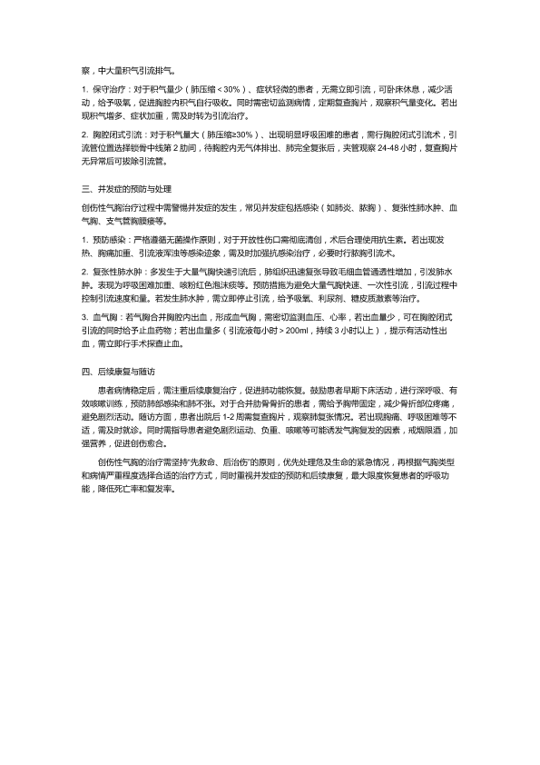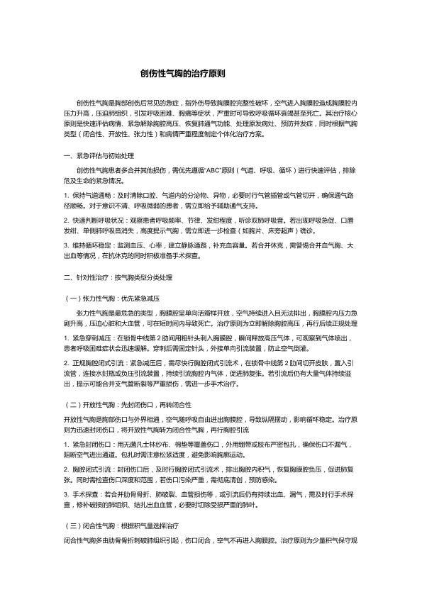 创伤性气胸的治疗原则