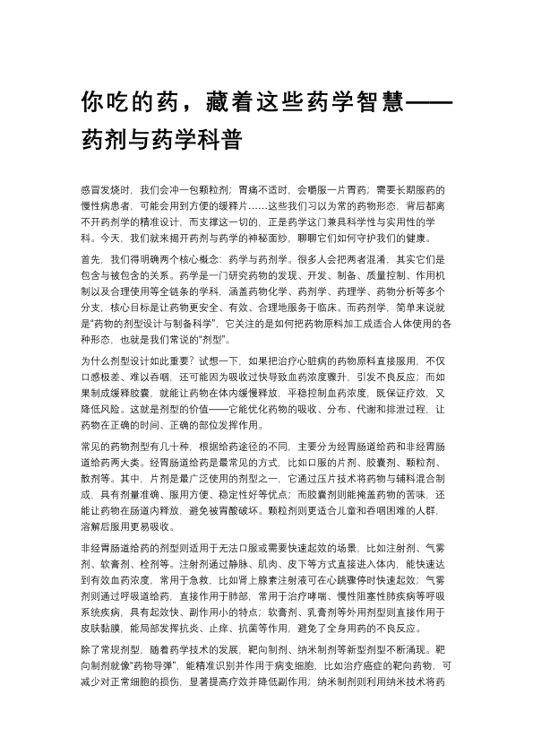你吃的药,藏着这些药学智慧——药剂与药学科普