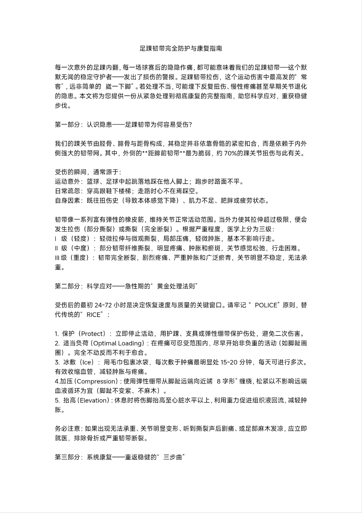 ⾜ 踝 韧 带 完 全 防 护 与 康 复 指 南