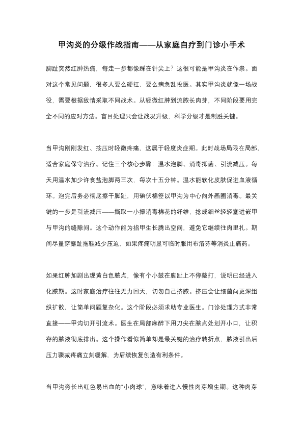 甲沟炎的分级作战指南——从家庭自疗到门诊小手术