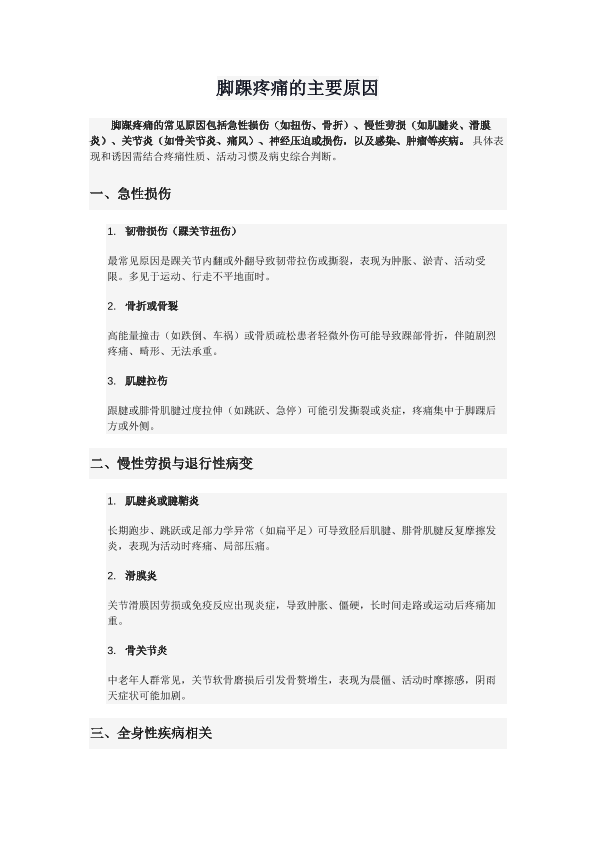脚踝疼痛的原因