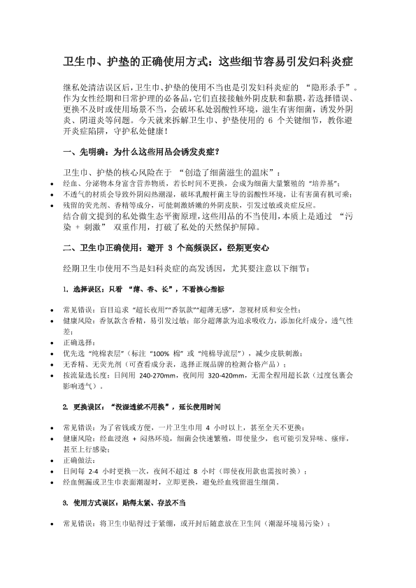 卫生巾、护垫的正确使用方式:这些细节容易引发妇科炎症