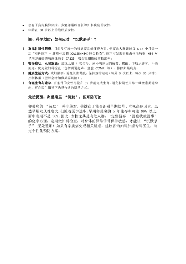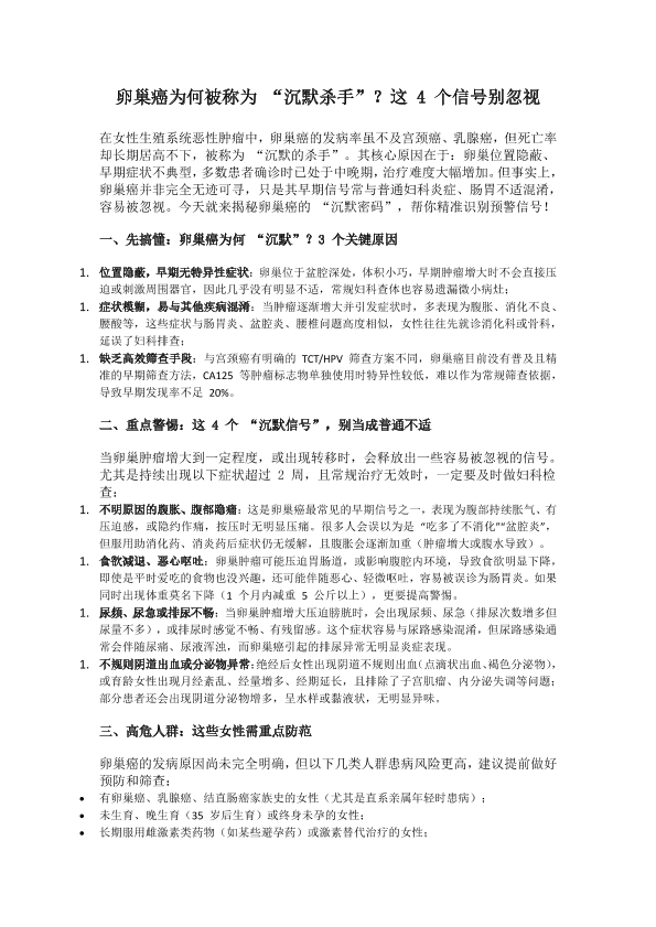 卵巢癌为何被称为 “沉默杀手”?这 4 个信号别忽视