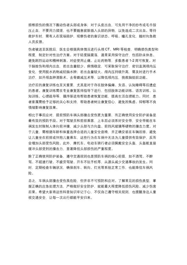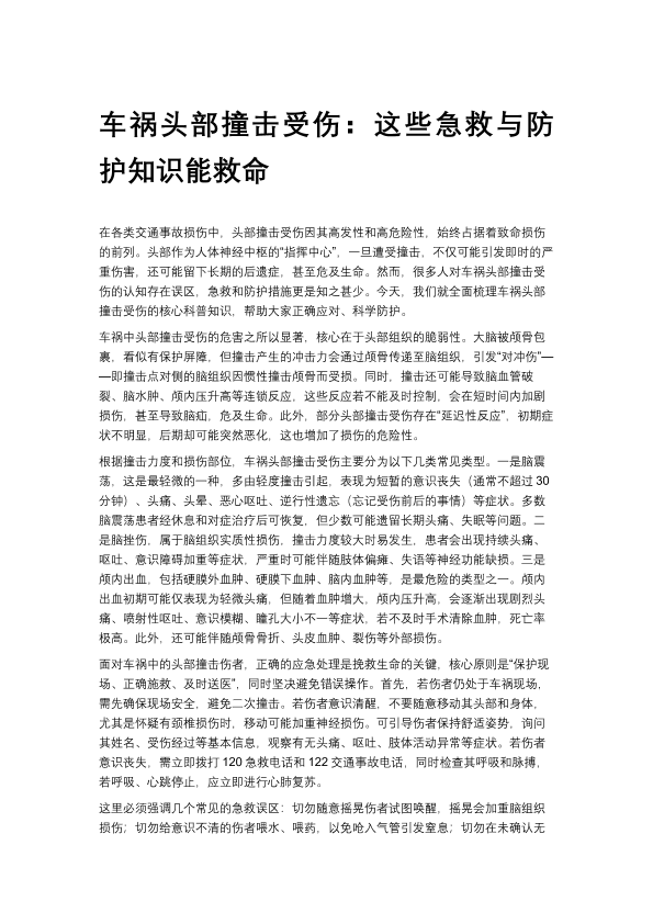 车祸头部撞击受伤:这些急救与防护知识能救命