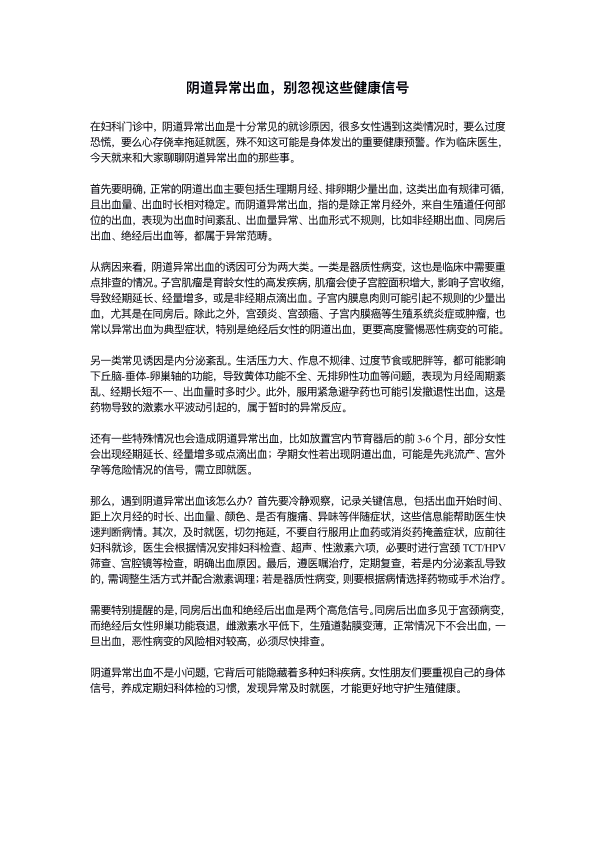 阴道异常出血原因及治疗方法