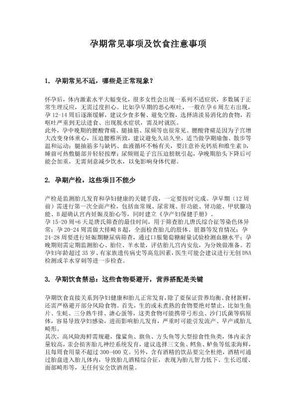 孕期常见事项及饮食注意事项