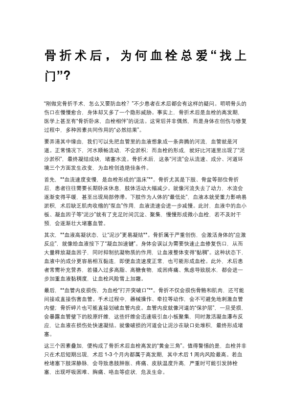 骨折术后,为何血栓总爱“找上门”?
