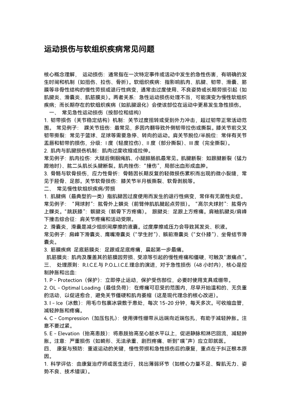 运动损伤与软 组 织疾病常见问题