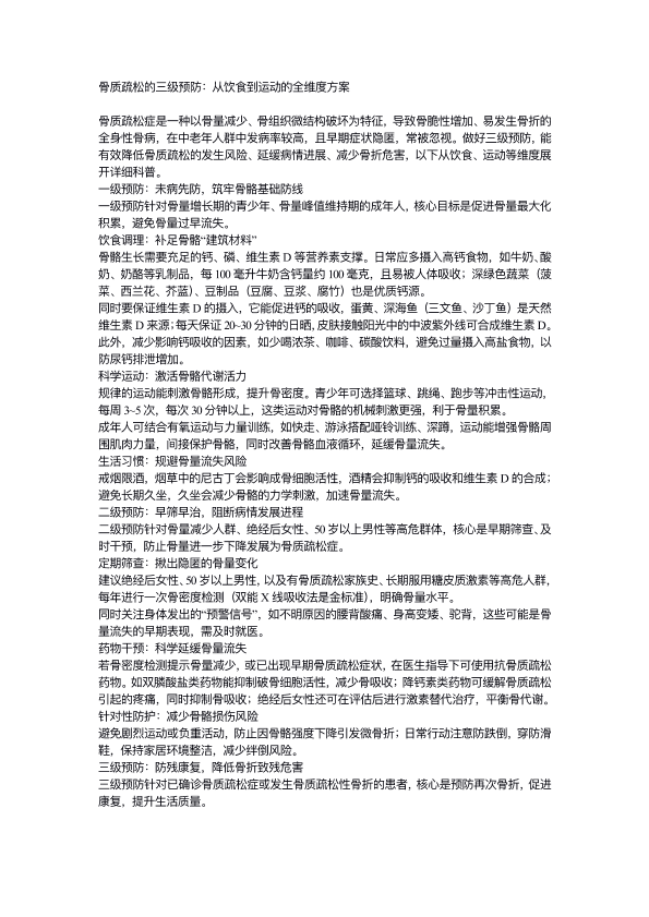 ⻣质疏松的三级预防: 从饮⻝到运动的全维度⽅案