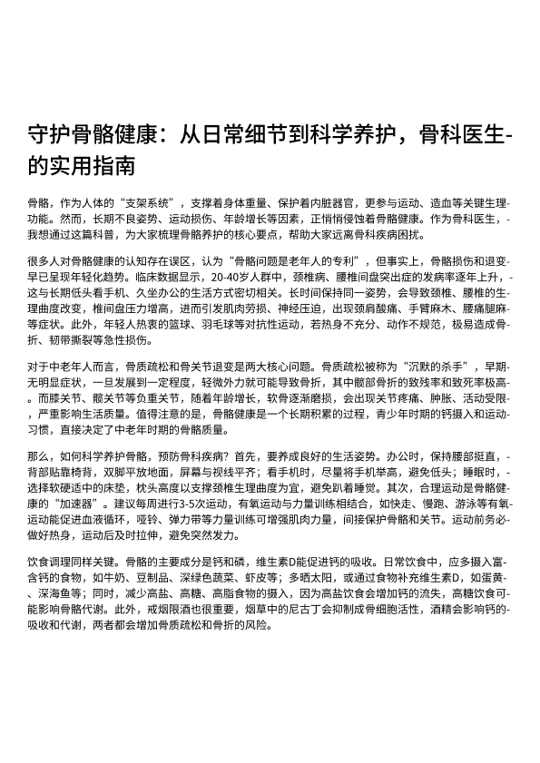 守护骨骼健康:从日常细节到科学养护,骨科医生?的实用指南