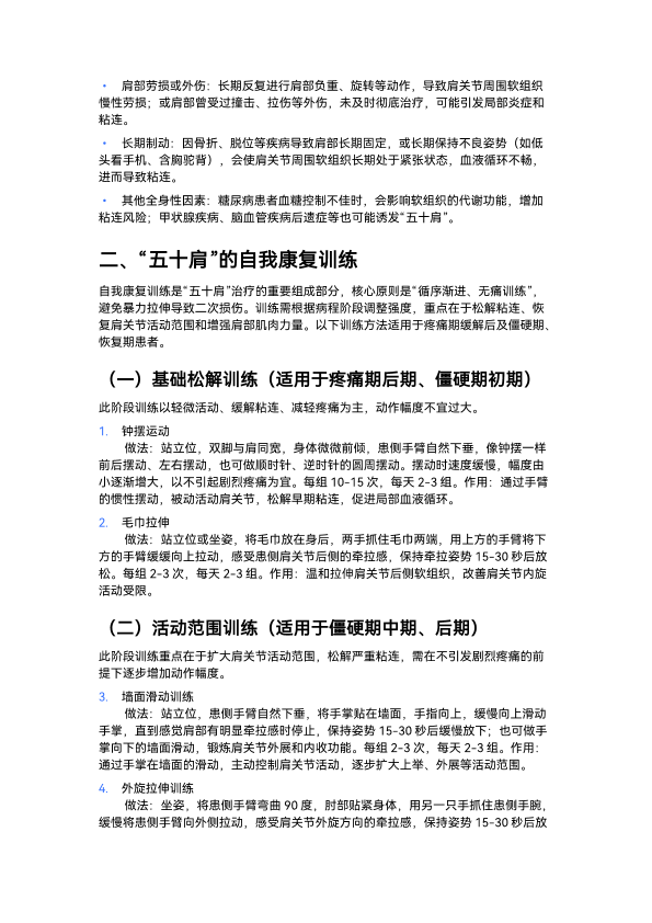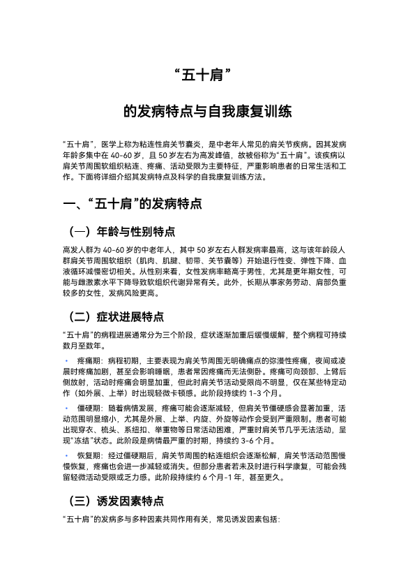 “五十肩” 的发病特点与自我康复训练