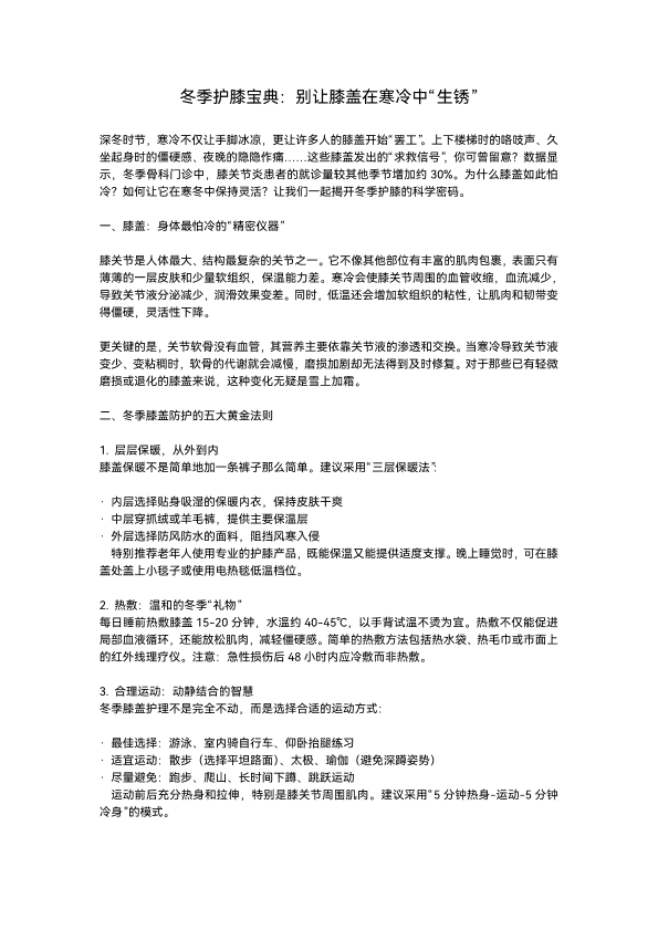 冬季护膝宝典:别让膝盖在寒冷中生锈