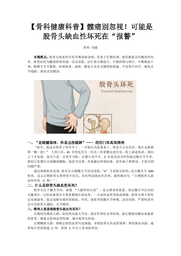 髋痛别忽视,可能是股骨头坏死在报警