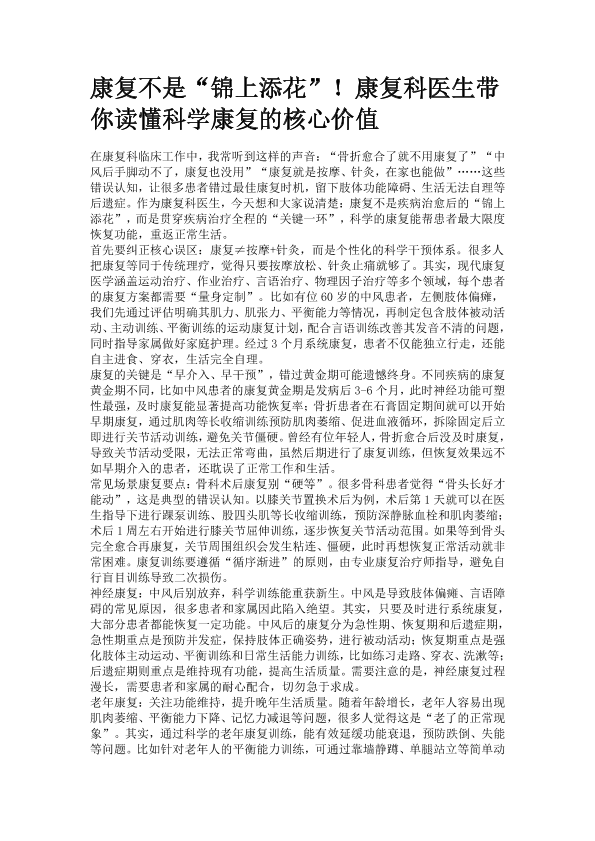 康复不是“锦上添花”!康复科医生带你读懂科学康复的核心价值