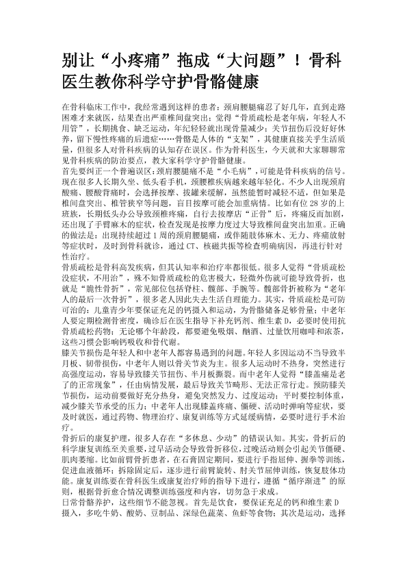 别让“小疼痛”拖成“大问题”!骨科医生教你科学守护骨骼健康