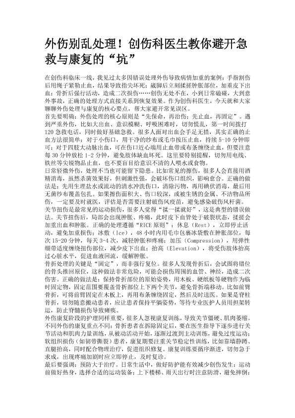 外伤别乱处理!创伤科医生教你避开急救与康复的“坑”